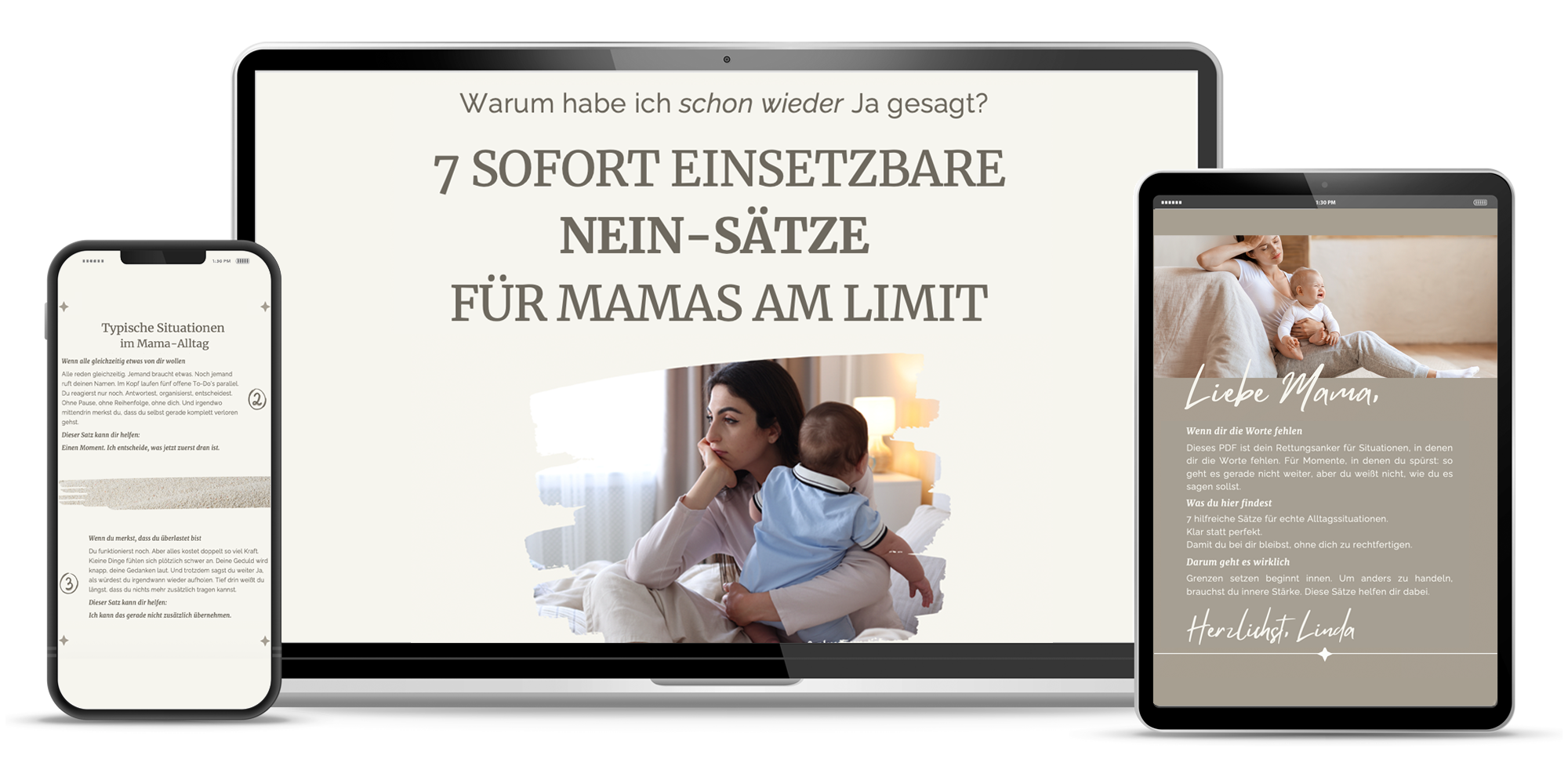 Dann trage hier deinen Vornamen und deine E-Mail-Adresse ein und hole dir die 7 NEIN-SÄTZE FÜR MAMAS AM LIMIT!